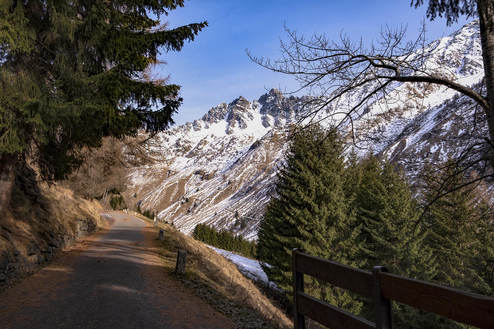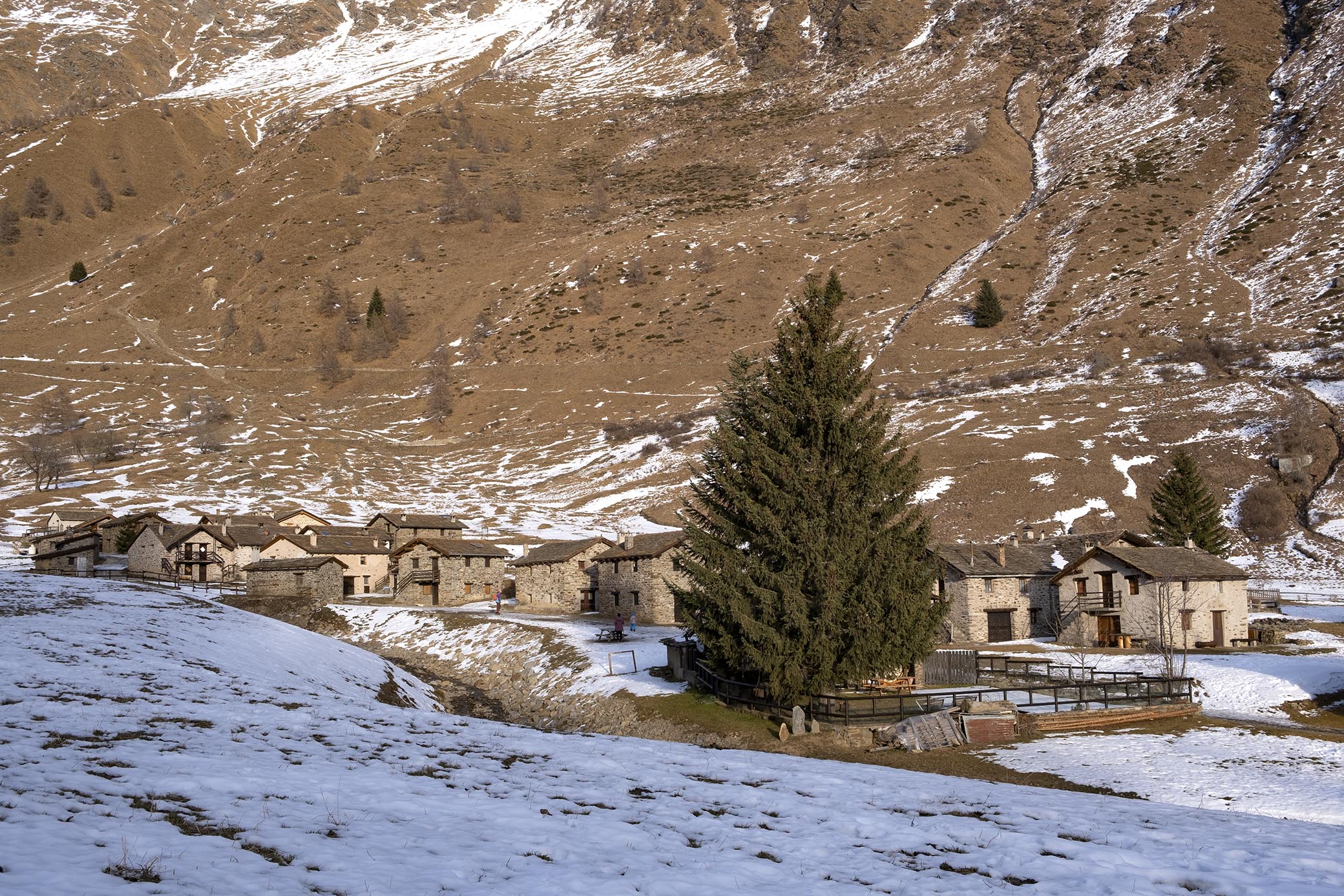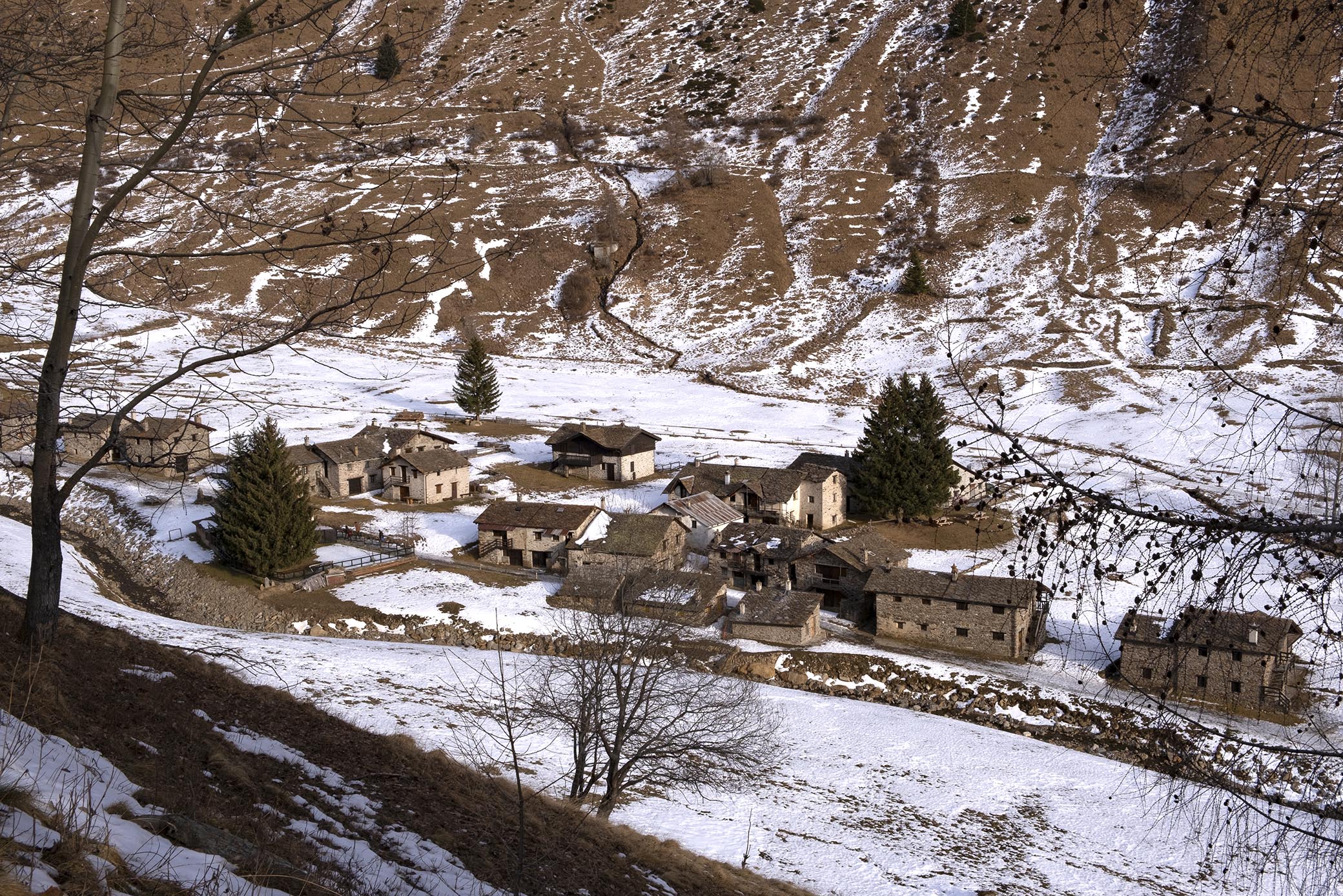 Per arrivare a Case di Viso, ho dovuto piacevolmente percorrere a piedi i circa tre chilometri del tratto di strada che conduce al borgo, visto che l’accesso in macchina d’inverno non è consentito. È stata un’esperienza molto bella; mi ha permesso di immergermi nella natura circostante, fatta di scorci incantevoli tra le montagne. Il tutto è stato favorito da un clima non particolarmente freddo, con poca neve, cielo terso e il sole che illuminava il paesaggio. Tutto questo ha reso la passeggiata davvero gradevole.