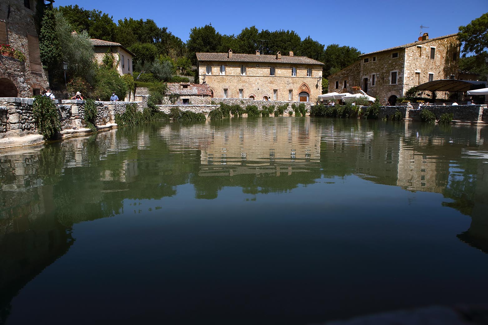 Una tappa imperdibile era Bagni Vignone, con la sua antica vasca termale al centro del borgo.