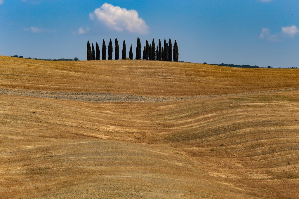 La rotonda dei cipressi a San Quirico d’Orcia, perfetta nella sua geometria naturale.