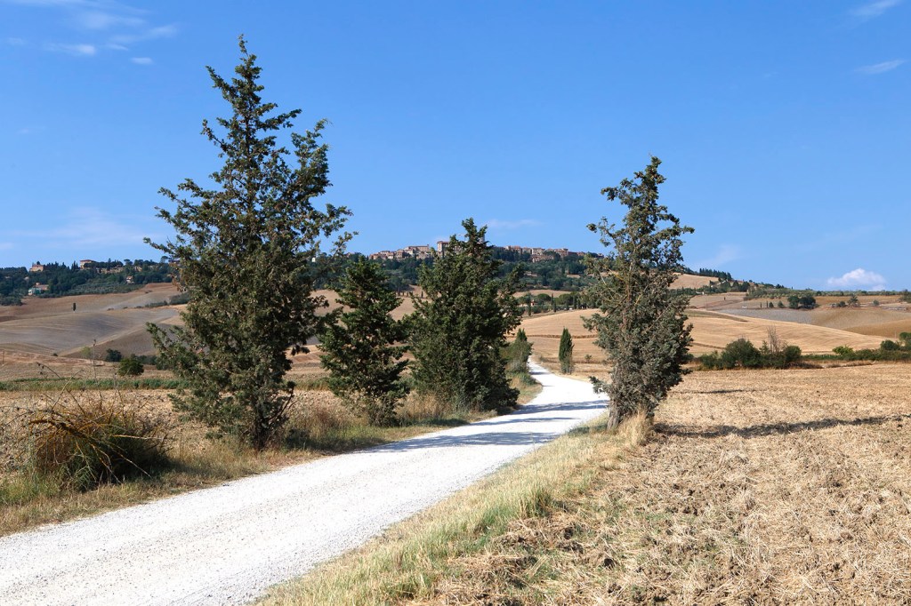 Il punto migliore per godere dello spettacolo è al tramonto, nella parte alta della strada, poco prima di entrare nel borgo. Da lì, tra i campi, si apre uno dei paesaggi più suggestivi della Toscana.