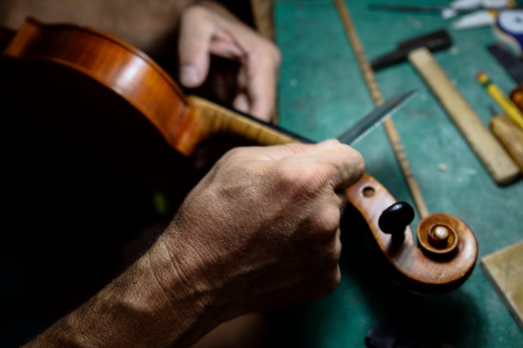 Sapienti e nodose, intagliano e levigano lo strumento.
