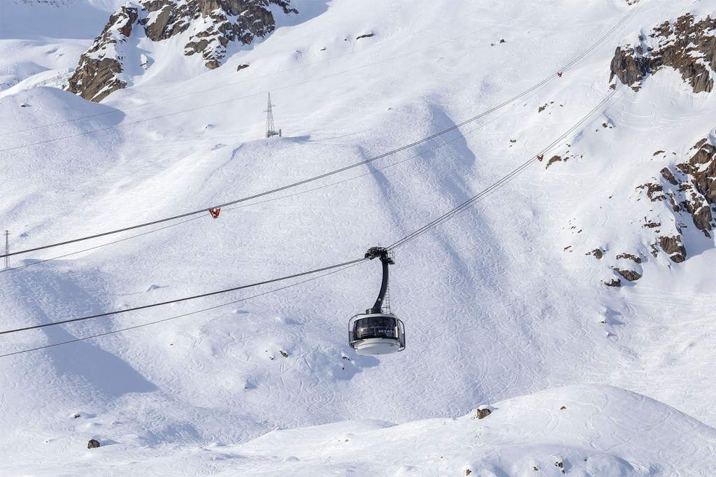 Le quattro cabine, dalle linee sobrie e di forma semisferica, sono strutture panoramiche estremamente leggere che in soli 15 minuti di viaggio consentono di accedere ai 3.466 metri di Punta Helbronner.
